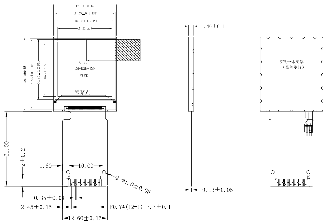 | 1 | LCD Size | 0.85inch(Diagonal) | - |